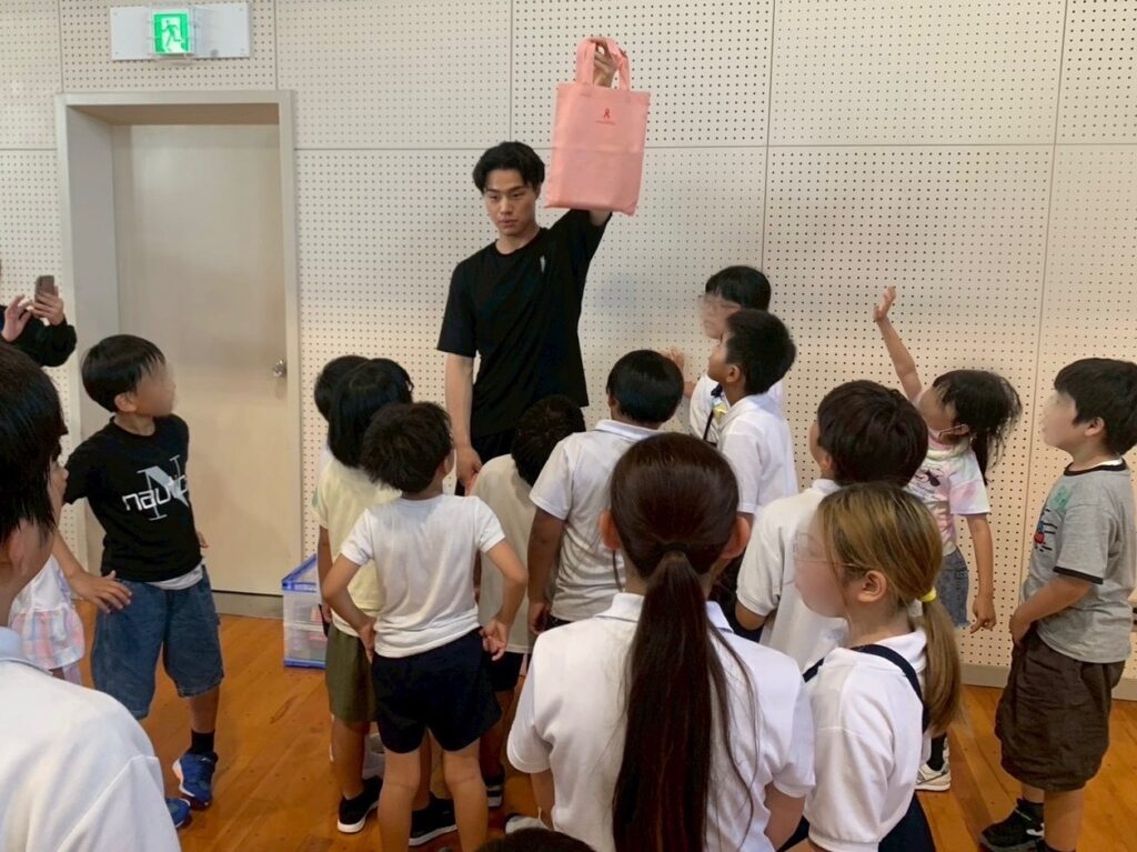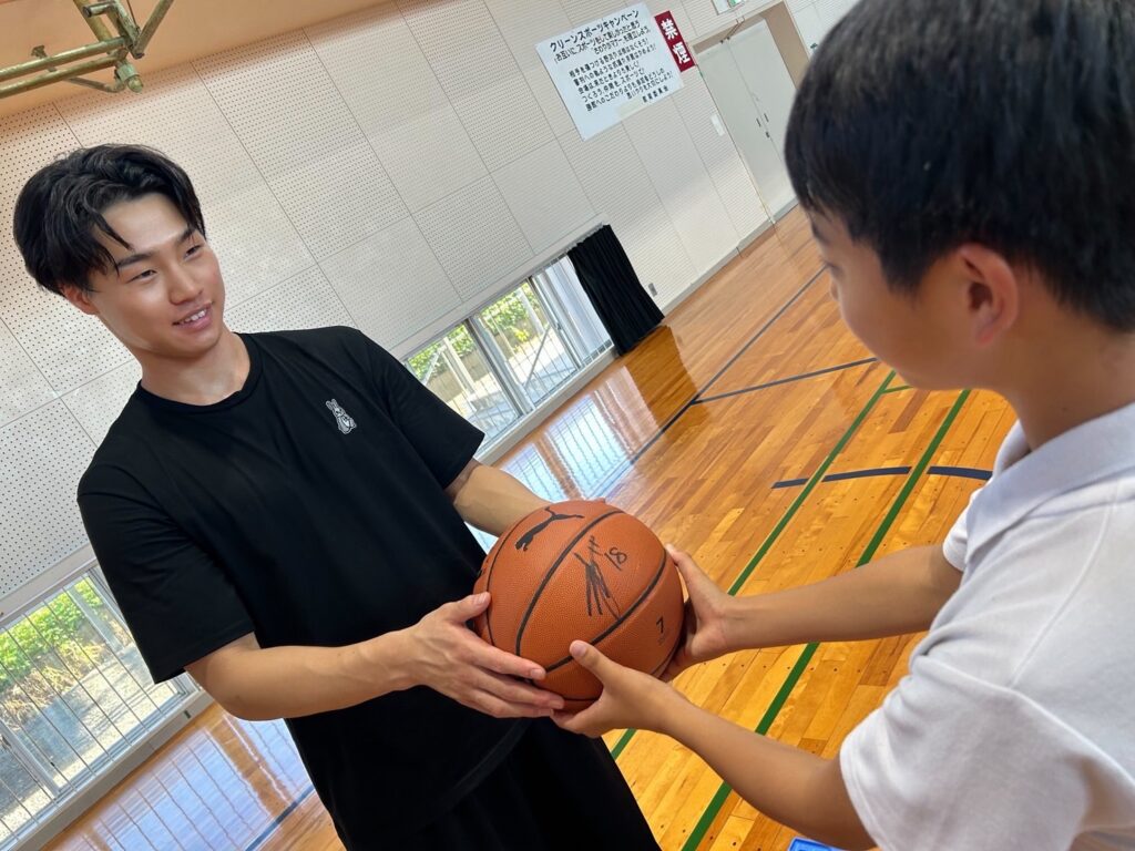 子どもたちへは、フードドライブで集まった食品のほか、宏介ギャラリーによる太田宏介さんのイラスト缶バッジ、プーマのバスケットボールを贈りました。